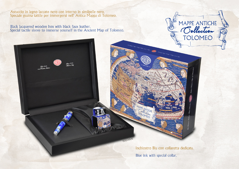 Перьевая ручка, выпущенная ограниченным тиражом и вдохновлённая пятью всемирно известными древними картами. Первая в серии перьевых ручек Tolomeo, выпущенная ограниченным тиражом в 680 экземпляров по всему миру.
