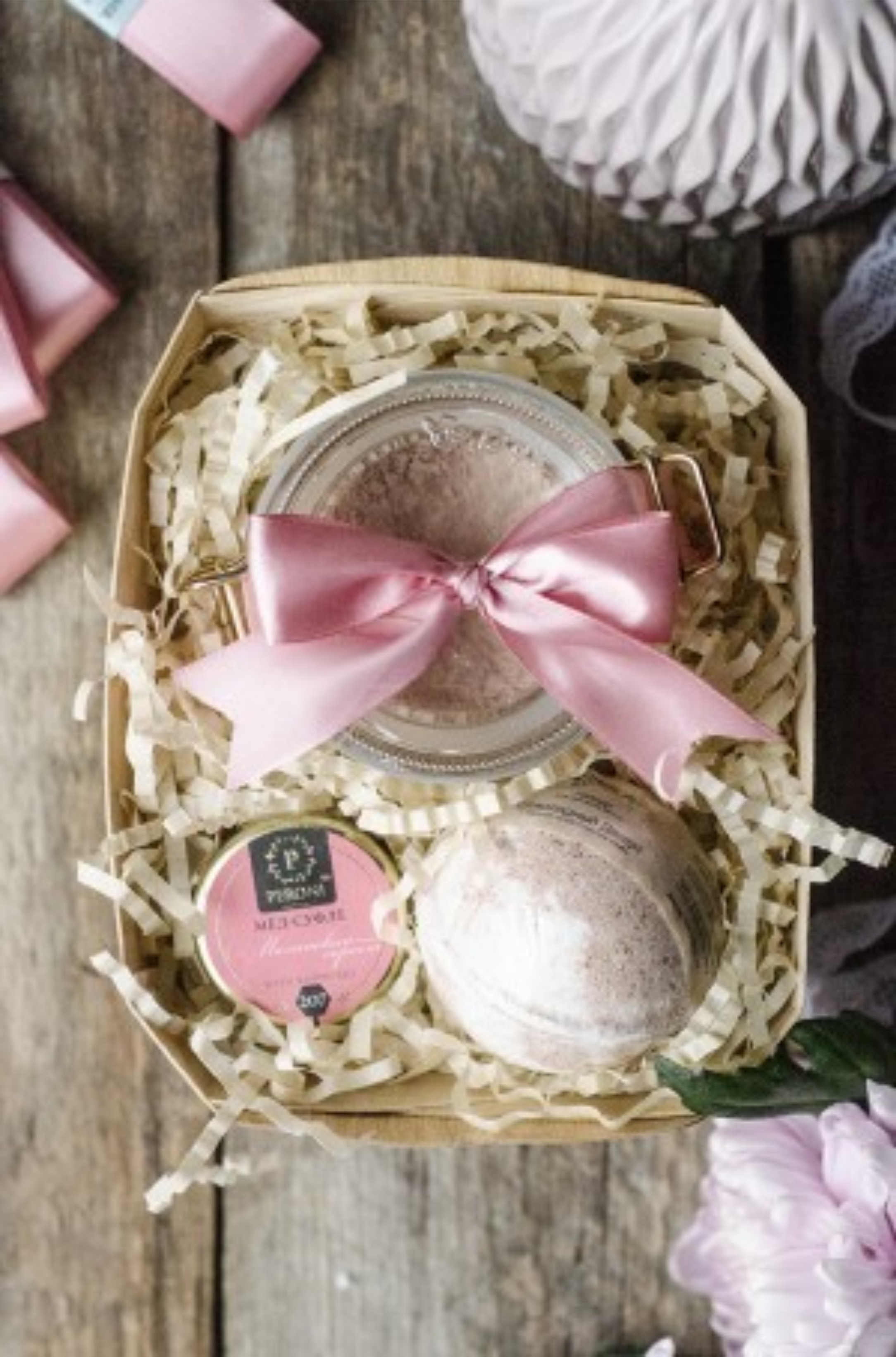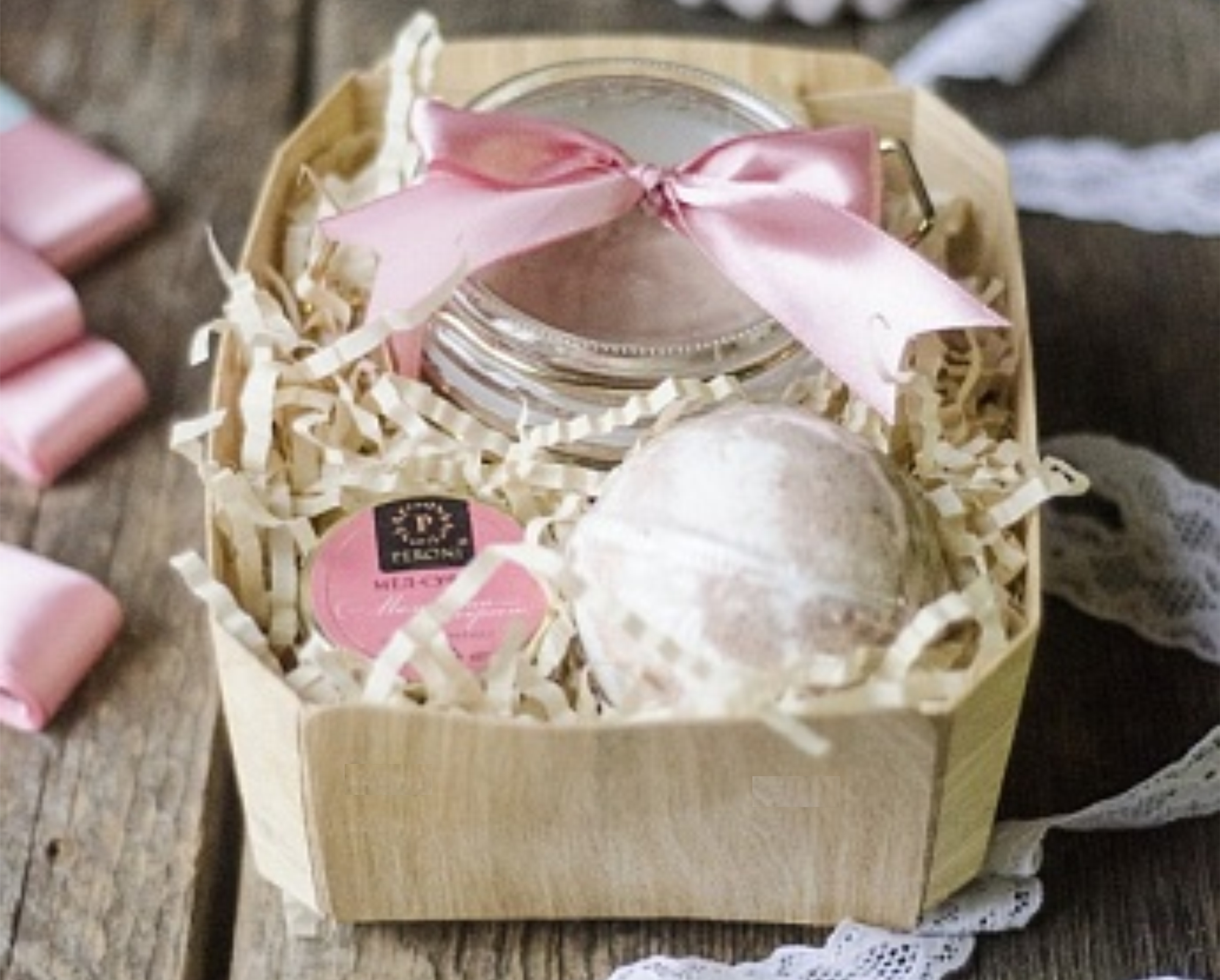 Пепельно-розовая глина для красоты и сладкий, нежный мед- суфле для удовольствия дополнены шипящей бомбочкой для ванны с ароматом шоколада. Женственный, приятный подарочный набор в оригинальной, компактной упаковке.
